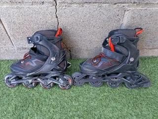 Patines en línea negros y naranjas