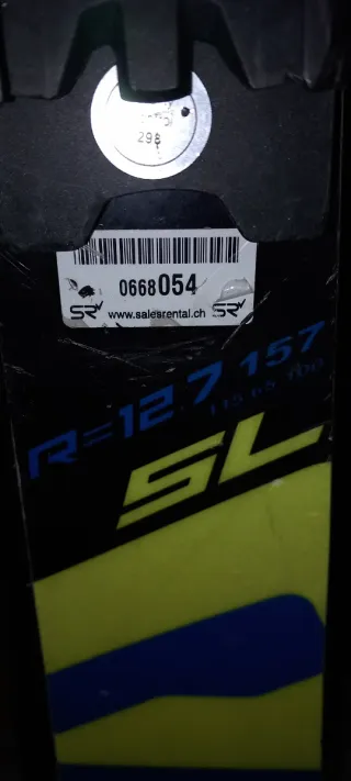 Esquís de competición Salomon X-Race SL. Los esquis se encuentran en buen estado de cantos y suelas. - Longitud: 157 cm - Radio de giro: 12.7 m - Medidas: 115-65-100