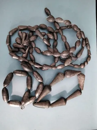 Lote de plomos de pesca diseñados para río. Son de diferentes formas y tamaños para adaptarse a diversas condiciones de pesca. - Material: Plomo. - Diseños variados para lanzado y pesca a fondo. - Ideales para la pesca deportiva en ríos.