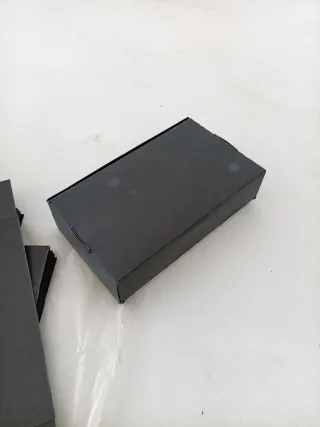 Lote de 18 cajas de cartón negras, listas para montar. Ideal para encajar regalo. - Material: Cartón. - Color: Negro. - Cantidad: 18 unidades. - 19cm x 11cm x 4,7cm (medida exterior) 🆕 Nuevo! ✈️ Envío disponible ⛔ Precio final MÁS PRODUCTOS DE OCASIÓN Y GRATUITOS EN MI PERFIL. Esta cuenta no pedirá nunca tarjeta de crédito ni dará enlaces para pagar fuera de Wallapop.