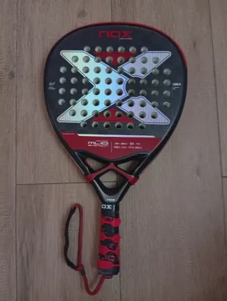 Pala de pádel Nox ML10 Shotgun. Comprada en 2025 - Diseño en color negro y rojo. - Incluye correa de seguridad. - Superficie con acabado mate. Se encuentra en muy buen estado, con pequeños roces en la zona del protector cómo se puede apreciar en las fotos, pero sin ningún golpe o desperfecto grande.