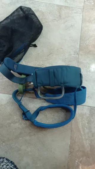 Arnés de escalada infantil de la marca Black Diamond, modelo Momentum. Diseñado para la seguridad y comodidad de los más pequeños en sus aventuras. - Color azul. - Hebillas de ajuste. - Porta-materiales.