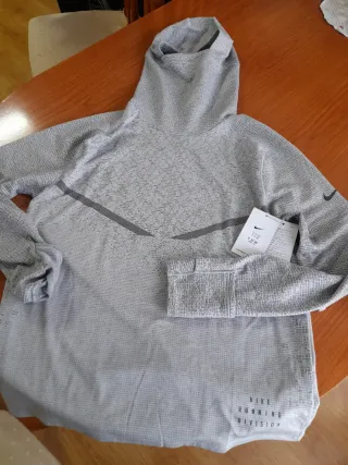 Sudadera gris de Nike con la línea Running Division. - Diseño con capucha. - Tejido texturizado. - Detalles reflectantes.