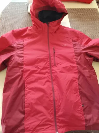 Chaqueta de esquí talla L de color rojo.solo 1 puesta es ligera y comoda Cuenta con capucha y cremallera frontal. - Diseño con paneles laterales en un tono de rojo más oscuro. - Bolsillo con cremallera en el pecho. - Cremallera frontal completa.