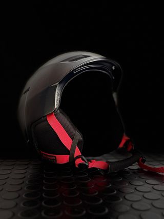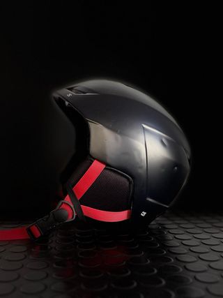 Casco de esquí Salomon en color negro con detalles en rojo. Ideal para disfrutar de la montaña con seguridad. - Diseño aerodinámico. - Sistema de ajuste. - Acolchado interior. - 56-59 cm