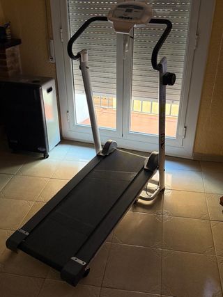 No lleva motor,no es electrica.Cinta de andar manual, ideal para mantener la forma en casa. Marca power magnetic. Es Plegable,ancha,con soporte botella,pulsometro,temporizador y mas funciones . - Es para adultos - No tiene ningún desgaste ni señal la cinta del poco uso que ha tenido. Como Nueva. - plegable y compacto. - Estructura metálica. - Superficie de carrera negra. - Empuñaduras acolchadas. - Cinta casi nueva,usada muy poco. - Sepuede ver en las fotos que esta nueva sin uso. - Se vende por no usar. RECOJIDA EN UTRERA,ESTA JUNTO A LA PUERTA DE ENTRADA Y DELANTE DEL APARCAMIENTO. FACIL DE CARGAR. COPRADA PARA PERSONAS MAYORES