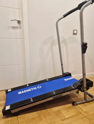 Cinta de andar magnética de la marca BASIC. Cinta de andar o correr con sistema magnético (no tiene motor). Silenciosa. Ideal para iniciarse a andar o correr en casa sin gastar mucho dinero. Tiene un diseño compacto plegable y con ruedas que permite guárdarla fácilmente