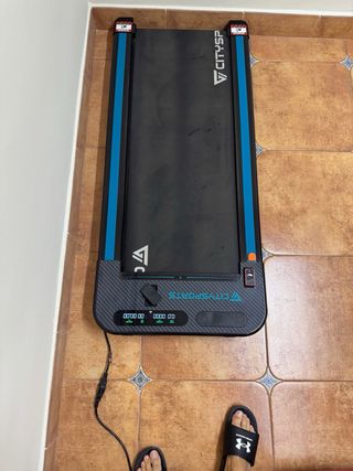 Cinta de andar con diseño moderno y pantalla digital. - Diseño con acabado en fibra de carbono. - Pantalla digital con información de distancia, tiempo, calorías y velocidad. - Marca: Citysports.