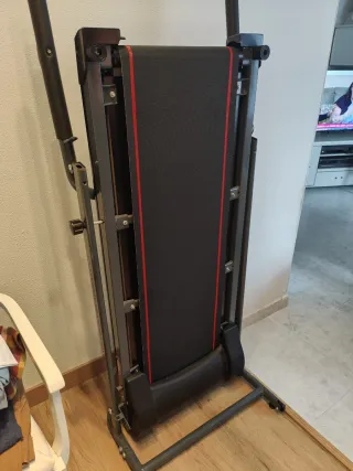 Nueva. Usada un par de veces y solo para andar. Potente motor AC de 1,5 CV que ofrece una velocidad máxima de 8 Km/h. Sistema de amortiguación con elastómeros, lo que previene lesiones musculares. Inclinación manual en 2 niveles (5,8% y 8,6%) para variar la intensidad del entrenamiento Pantalla LCD con 4 funciones y 13 programas(12 predefinidos, 1 manual) para una sesión de monitorización completa. Sistema de plegado automático ultra compacto y ruedas de transporte para facilitar el desplazamiento y el almacenamiento. Incluye un sistema de seguridad con llave y un soporte para tablet/móvil.
