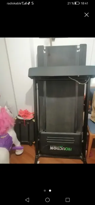 funciona perfectamente, con bluetooth para poner música, cargador USB, soporte para el móvil, ruedas para moverla y correa de seguridad cambio por material de gimnasio, prensa, abductor, rack...
