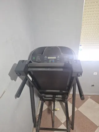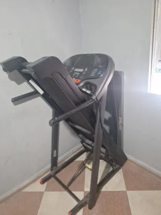 Cinta eléctrica, plegable para correr o andar en casa. Para baja intensidad. Superficie útil 43 cm de ancho y 121 cm de alto. Velocidad máxima 13 km/h. Inclinación <10%, peso máximo usuario 130kg. Para recoger se encuentra en Bollullos Par del Condado.