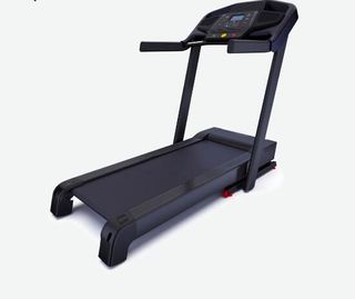 Cinta de correr DOMYOS T900D en color negro. A RECOGER (en Las Cabezas de San Juan) - Diseño moderno y funcional. - Superficie de carrera amplia. - 8 programas de entrenamiento. - Velocidad máxima de 18 km/h. - Inclinación de hasta el 10%. - Panel de control intuitivo. - Ventilador incorporado. - Bluetooth
