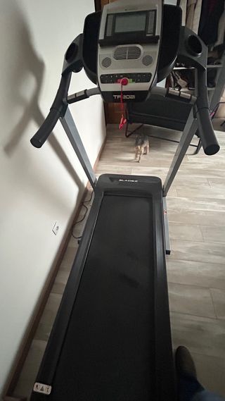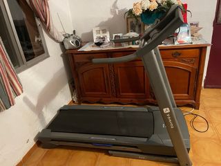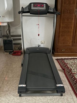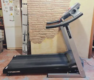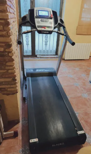 Cinta de correr de la marca Bladez, modelo TR202i. Motor: Cuenta con un motor de 3 CV. Velocidad: Alcanza una velocidad máxima de 18 km/h. Características adicionales: Es plegable y dispone de un sistema de inclinación eléctrica que simula pendientes. Lleva los accesorios de engrase. Poquísimo uso, como nueva. Cinta de correr comprada en El Corte Inglés.