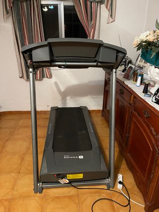 Cinta de correr BEHUMAX en color negro. Vendo cinta en buen estado y funcionando perfectamente. Ha tenido poco uso y siempre se ha guardado en interior. ✔️ Velocidad regulable ✔️ Pantalla con funciones básicas (tiempo, distancia, velocidad, calorías, etc.) ✔️ Potencia moderada, ideal para caminar rápido o trotar suave ✔️ Inclinación manual con 2 posiciones: – Ligera inclinación – Plano colocando las patas Ideal para personas que quieren mantenerse en forma en casa sin necesidad de una cinta profesional o para entrenamientos suaves.
