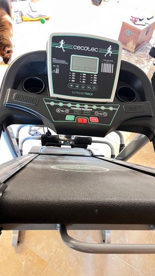Cinta de correr Cecotec ExtremeTrack, modelo tope de gama. - Diseño moderno en gris y negro. - Superficie de carrera amplia. - Soporte para botellas integrado. - Con cinturón de masaje - Inclinación motorizada Casi sin uso