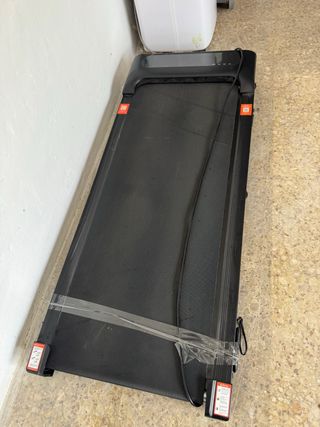 Cinta de correr negra, ideal para entrenar en casa. Se pliega para un fácil almacenamiento. Nueva tiene un precio de 220€ - Diseño compacto. - Superficie de carrera amplia. - Panel de control integrado.