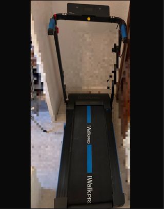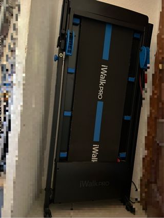 Se vende cinta de correr iWalkPro en excelente estado, prácticamente sin uso. - Diseño moderno en negro y azul. - Marca iWalkPro visible en la consola y la cinta.