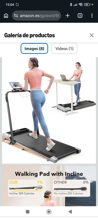 Cinta de correr Walking Pad con función de inclinación. - Inclinación del 7% para quemar 325 calorías. - Diseño compacto y fácil de almacenar. - Se puede poner la barra para correr o sin ella. Usada dos veces. Está nueva.