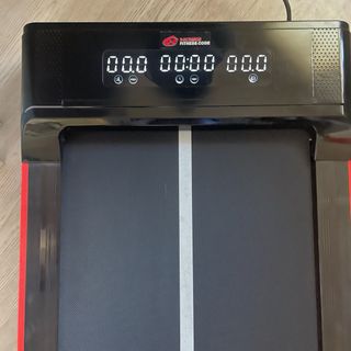 Vendo esta cinta de correr Charles Bentley porque ya no la uso. Es mecánica, no eléctrica, así que el ritmo lo pones tú con tus pasos. Funciona perfectamente. Tiene una pequeña consola que mide el tiempo, la velocidad, la distancia y las calorías (con un botón rojo "MODE"). Como se ve en una de las fotos de detalle, uno de los asideros negros acolchados tiene una pequeña rozadura, pero no afecta en absoluto a su uso. Lo mejor es que es súper compacta y se pliega del todo para guardarla en cualquier rincón. Ideal para caminar o correr ligero en casa sin ocupar espacio.