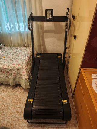 Cinta de correr de alta intensidad con diseño curvo. Ideal para entrenamientos de fuerza y velocidad. - Construcción robusta para mayor durabilidad. - Superficie de carrera antideslizante. Está sin apenas uso pero por la humedad de mi casa se a oxidado un poco de ahí su precio