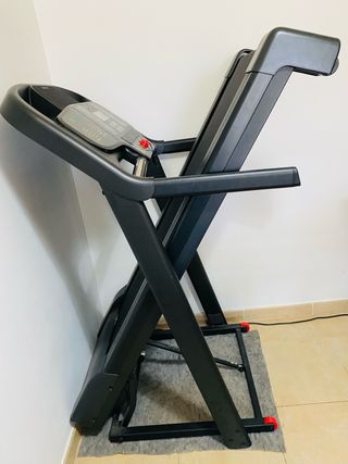 ¡Ponte en forma sin salir de casa! 🏃♂️💨 Vendo Domyos Run100 en estado impecable. Ideal para pisos con poco espacio. ✅ DISEÑO ULTRA COMPACTO: Se pliega totalmente (solo 38 cm de profundidad plegada). ¡Cabe bajo la cama! ✅ RENDIMIENTO: Velocidad hasta 14 km/h e inclinación manual del 3% para quemar más. ✅ COMODIDAD: Superficie de carrera de 45x120 cm con sistema de amortiguación que cuida tus articulaciones. ✅ ESTADO: Como nueva, solo 2-3 usos. Dimensiones: 156x76x115 cm. Incluye ruedas para moverla sin esfuerzo. 📍 Recogida en Mislata. ⚡ ¡Tu gimnasio en casa por mucho menos!