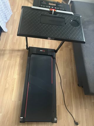 Cinta de correr con escritorio integrado, ideal para trabajar o estudiar mientras haces ejercicio. Diseño moderno y funcional. - Escritorio amplio con superficie texturizada. - Panel de control con pantalla digital. - Sistema de plegado para fácil almacenamiento - Velocidad regulable / ajustable - Compacto / fácil de guardar - El escritorio se puede retirar - En muy buen estado, se ha utilizado muy poco - Comprado hace 1-2 años - Precio original 309€ Para recoger en Madrid