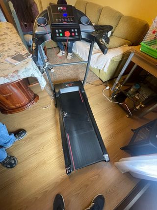 Cinta de correr FITFIU en buen estado. - Pantalla digital con información de calorías, tiempo, distancia y velocidad. - Botones de control de velocidad y modo. - Incluye manual de usuario y lubricante.