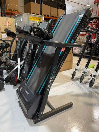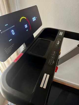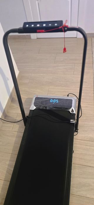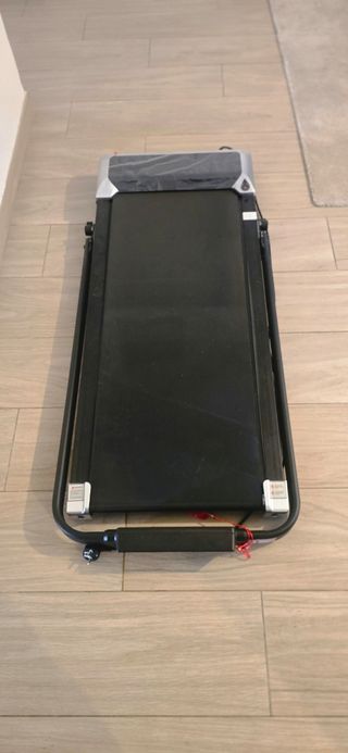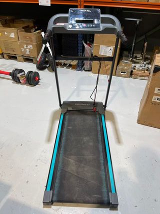 Cinta de correr Domyos RUN100 como nueva. Pantalla con el plástico aún puesto (tal y como se ve en La imagen), mando a distancia, llave de seguridad mientras corres, soporte para tablet retráctil, instrucciones incluidas. Ideal para entrenamientos en casa. No tiene ni 10 horas de uso. - Diseño plegable para fácil almacenamiento. - Pantalla digital con información de entrenamiento. - Superficie de carrera amplia y cómoda.