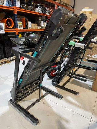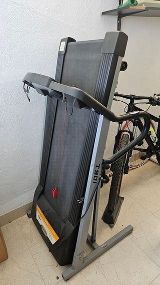 Cinta de correr T101 en buen estado. - Diseño plegable para fácil almacenamiento. - Pantalla digital con información de entrenamiento. - Asas de agarre ergonómicas. - Ruedas para facilitar el transporte.