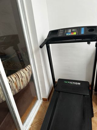 Cinta de correr profesional, muy poco uso, en estado impecable. - Motor 2 CV - Velocidad hasta 14 km/h - 12 programas de entrenamiento y 3 niveles de inclinación - Pantalla LCD con pulsómetro - Superficie de carrera amplia y cómoda - Incluye mancuernas, barras de espuma y cinturón de masaje vibratorio. - Plegable con sistema hidráulico, ocupa poco espacio. - Con sistema de seguridad magnético y ruedas para transporte. ➡️ Costó 342€ y actualmente está fuera de stock. Ideal para entrenar en casa sin ir al gimnasio. No se hacen envíos.