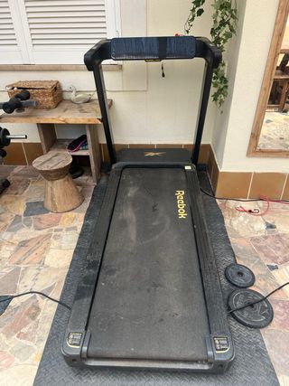 Cinta de correr Reebok i-Run 4.0 - CASI NUEVA Sin uso, funciona a la perfección tanto para andar como para correr (la usé para sesiones de 30–60 min y va estupendo). Detalles técnicos: Motor 2 CV — hasta 16 km/h 12 programas + objetivos (tiempo, distancia, calorías) Pantalla LED con info clara (velocidad, tiempo, pulsaciones…) Amortiguación que reduce impacto en articulaciones. Plegable vertical y horizontal - ideal para casa pequeña. Soporte para tablet/smartphone. Ruedas de transporte. Muy poco uso. Entrega en mano.