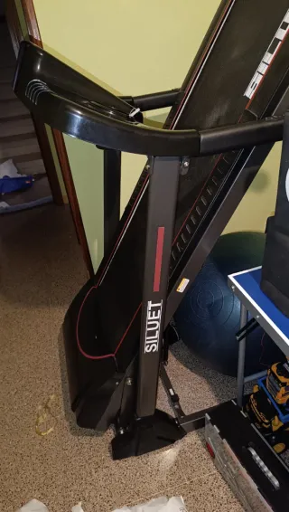 Cinta de correr de la marca SILUET. - Diseño en color negro con detalles en rojo. - Estructura robusta y estable. - Con altavoces para conectar el móvil - Con inclinación - Motor potente para correr hasta 15km/h La cinta está impecable, prácticamente sin uso y a toda prueba