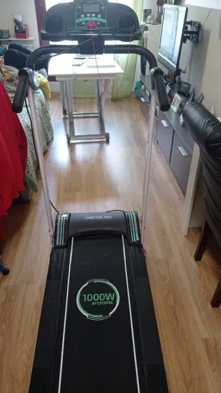 Cinta de correr de la marca Cecotec con una potencia de 1000W. - Diseño moderno y funcional. - Ideal para entrenamientos en casa. - plegable