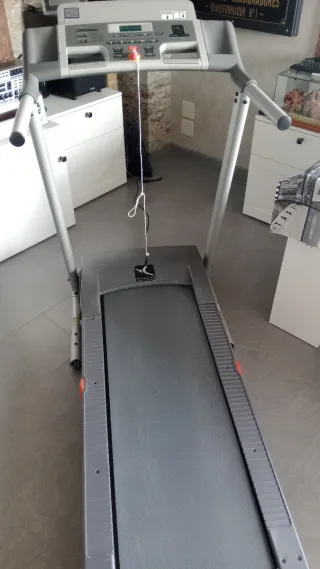 cinta de correr de la marca domyos modelo t520b en perfectísimo estado se ha usado dos veces la hemos comprado nueva ,es plegable y estable diferentes grados de inclinación y velocidades, con botón de seguridad con conexión a la persona gasto de calorías y 10 programas preseleccionados inclinación máxima del 10% precio nueva en tienda 580 eur