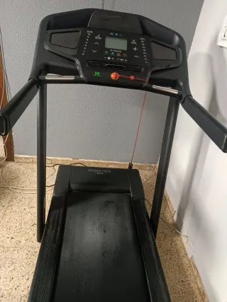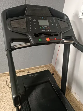 Cinta de correr DOMYOS T900C en color negro. - Pantalla digital. 32 programas. - Altavoces integrados. - Botón de parada de emergencia. Ventilador. Regalo motor de repuesto nuevo. Poco uso. La vendo por no usar.