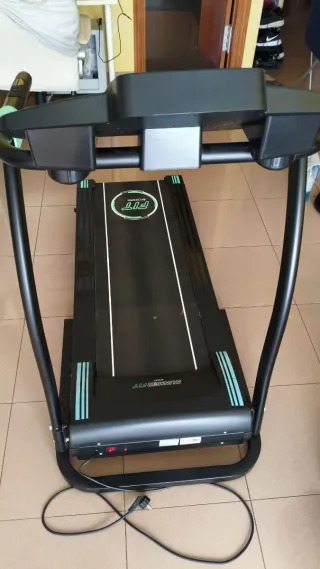 Cinta de correr plegable, en excelentes condiciones. Es compacta y fácil de guardar. Muy poco uso, bien cuidada y lubricada. Vendo por falta de uso por salud y mudanza. - Valor de 1100€ - BINOM BT3. - Inclinación 0-12% - Hasta 100kg - amortiguación para cuidar rodillas y articulaciones. - Velocidad hasta 14km/h - cinta de seguridad de paro de emergencia. - 8 programas de entrenamiento. - Monitorización de pulso cardíaco mediante contacto en manillar. - Superfície de carrera: 48cm x 130 cm. - DIMENSIONES: Largo: 145.5 cm x Ancho: 74.5 cm x Alto: 123.5 cm. - MEDIDA PLEGADA DE PIE: ancho 74,5 x profundo 26,4 x alto 145,5 cm SOL