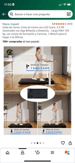 Comprada en mayo de 2024, aun en garantia, usada poquísimas veces. 4,5 estrellas en Amazon. Especificaciones del producto: Velocidad: 1 - 10 KM/H Tamaño del producto: 127*56,8*12,6 CM Área de carrera: 100*40 CM Capacidad máxima de carga: 130KG Rueda de transporte: si precio negociable si se recoge en casa.