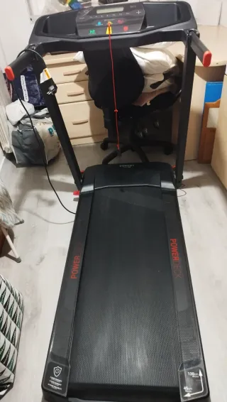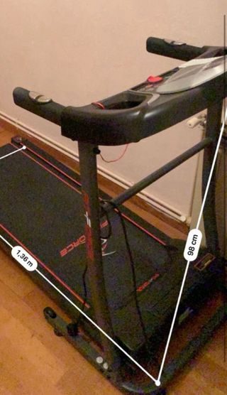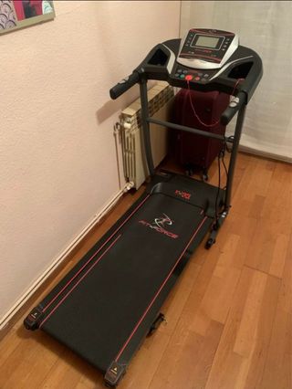 Cinta de correr en buen estado, ideal para entrenar en casa. - Diseño moderno en color negro y detalles en rojo. - Pantalla digital con información de entrenamiento. - Sistema de plegado para facilitar su almacenamiento.. 215€ negociables Se puede probar
