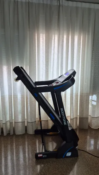 Cinta de correr Fytter con diseño plegable, ideal para optimizar el espacio en casa. Su estructura es robusta y está pensada para un uso cómodo. - Diseño plegable para fácil almacenamiento. - Superficie de carrera amplia. - Panel de control con pantalla. - Pasamanos ergonómicos. La compré hace 6 años por 650€ al principio de la pandemia. Soy alto y necesitaba una cinta larga para poder correr con comodidad. Hace ya 2 años que la uso muy poco. No hago contraofertas ni ningun regateo como en un bazar. Si te gusta, estás invitado a probarla para convencerte y a llevártela.