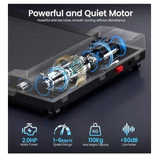 Motor de 2,5 CV con velocidad ajustable: La cinta de correr está equipada con un motor de 2,5 CV y la velocidad se puede ajustar entre 1 y 6 kilómetros por hora. Tiene una capacidad de carga máxima de 136 kg. Puede utilizar el mando a distancia para ajustar la cinta de correr a la velocidad adecuada Longitud del cinturón: 90 cm Altura adecuada: 170 cm - 180 cm Capacidad de carga: 136 kg Velocidad maxima: 6KPH