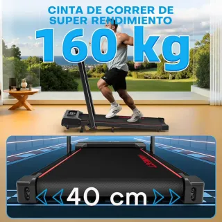 Cinta de correr FITFIU en color negro. - Diseño para fácil almacenamiento. - Superficie de carrera negra con detalles en rojo. - Marca: FITFIU FITNESS.