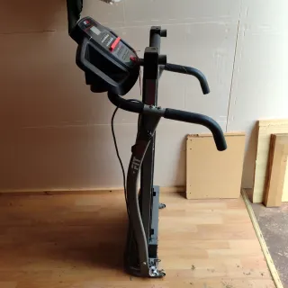 Cinta de correr Bonplus Fitness, ideal para entrenar en casa. Su diseño plegable permite guardarla fácilmente.Practicamene nueva - Estructura robusta de color negro. - Superficie de carrera amplia. - Barras de apoyo acolchadas. - Regalo masajeador