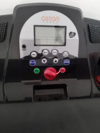 Cinta de correr de la marca Astan Hogar. - Pantalla digital. - Botones de acceso rápido para 3KM/H, 5KM/H, 7KM/H y PULSE/CAL. - Botones de PROG, MODE, START, STOP y control de velocidad (flechas). - Conexión para MP3.