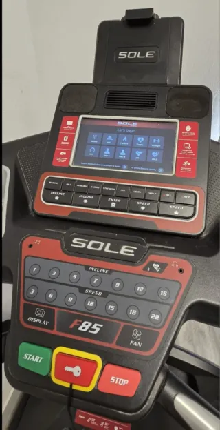 Vendo cinta de correr Sole F85 en excelentes condiciones. Está prácticamente nueva y muy bien cuidada. Es una máquina de correr plegable, ideal para ahorrar espacio. - Marca: Sole - Modelo: F85 - Plegable - Pantalla LCD de 10.1 " - Bluetooth - Soporte tablet o teléfono - Dispositivo USB de carga - Programas estándar: 6 - Programas personalizados: 2 - Monitoreo del ritmo cardíaco: empuñaduras de pulso y cinta para el pecho compatibles - Ventiladores de enfriamiento - Motor: 4.0 HP, tipo DC - Velocidad hasta 20km/h - Inclinación: 0-15 niveles