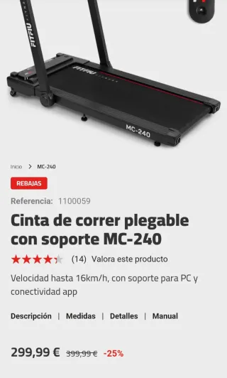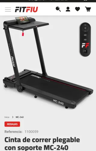 Cinta de correr plegable con soporte, modelo MC-240. En perfectísimas condiciones. Tiene 5 usos literal... nueva como de tienda, se puede ver sin compromiso, solo venta en persona. La vendo porque estando en el gimnasio... no le doy uso.