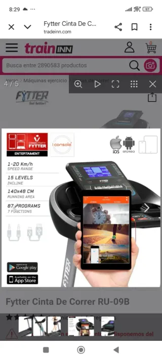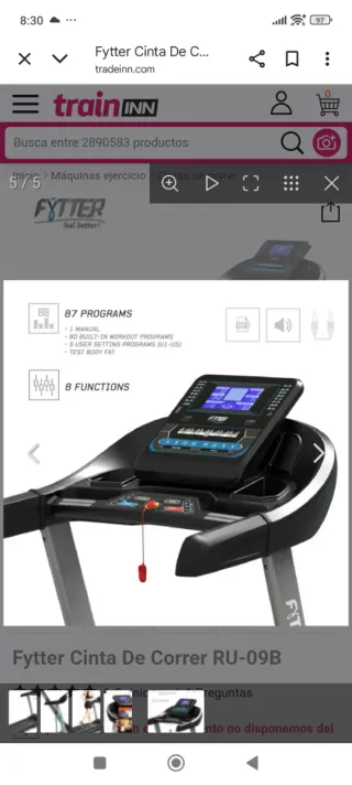 Cinta de correr Fytter modelo RU-09B. - 87 programas de entrenamiento. - 2 programas manuales. - 80 programas de entrenamiento incorporados. - 5 programas de configuración de usuario. - Función de test de grasa corporal. - 8 funciones adicionales.