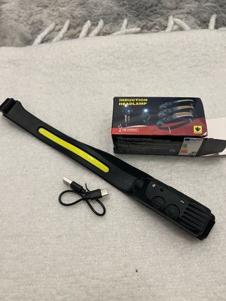 Linterna frontal LED recargable con sensor de movimiento (induction headlamp). Ideal para correr, senderismo, camping, pesca, bricolaje o trabajo nocturno. Muy cómoda y ligera, con cinta ajustable para la cabeza. Se puede encender/apagar también con sensor de mano sin tocar botones. Incluye cable de carga USB. Características: • Linterna frontal LED • Sensor de movimiento (encendido sin tocar) • Batería recargable 3.7V • Carga por USB • Varias intensidades de luz