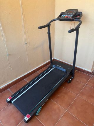 Cinta de correr eléctrica y plegable, ideal para mantenerte activo en casa. Su diseño permite guardarla fácilmente. - Motor de 1000W de potencia. - Superficie de carrera cómoda. - Estructura resistente y estable. Se compraron dos y esta al final no se ha utilizado, como experiencia con la otra es buen producto y esta sin abrir