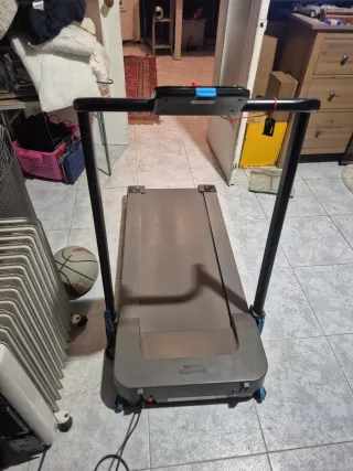Cinta de correr Domyos TC500 en buen estado. - Diseño plegable para facilitar el almacenamiento. - Pantalla digital para seguimiento de métricas. - Superficie de carrera cómoda. - Estructura robusta.
