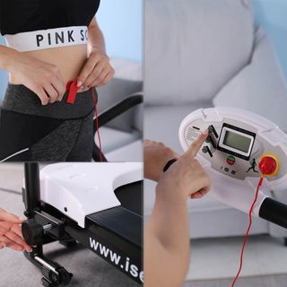 Cinta de correr Fitt con consola digital y pulsómetro. - Pantalla LCD. - Botones de inicio/parada y selección de velocidad. - Cable de seguridad rojo.